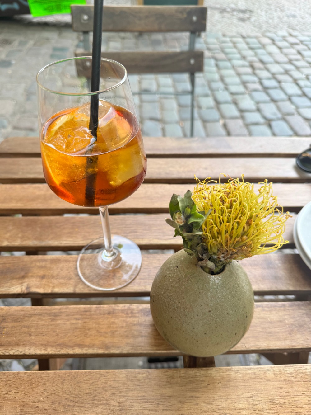 The service is always friendly, if occasionally a bit scattered and delayed. I’m never sure who my server is, but what does it matter on a summery Sunday, spritz in hand, sun on my face? At Spindler, you can while away the morning in style.