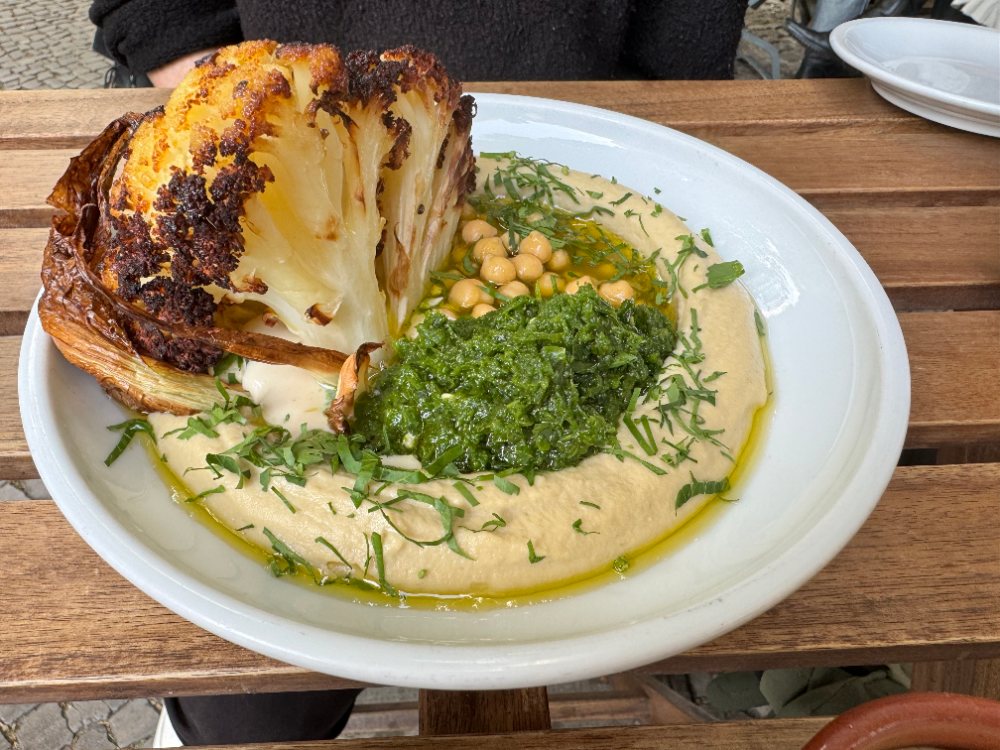 The tahini was extra creamy, and the olive oil worked nicely with both dips—mild and not too bitter. The cauliflower was cooked just right, and the schug brought a fresh, herbal note that complemented everything well.