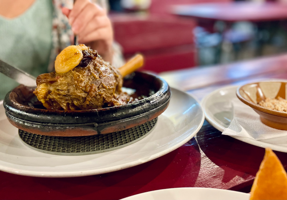 We came for a casual dinner and ordered the lamb tagine, the falafel plate, and a fenugreek tea. Let’s start with what you need to order: the lamb tagine with peaches and prunes. Especially the prunes infuse pure depth into the dish and create a wonderful sticky sauce. The plate was scraped clean at the end of our meal :)